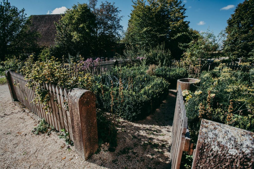 Es war eine Gratwanderung, der historischen Realität und den Erwartungen der Museums-Besucher bei der Gestaltung gleichermaßen Rechnung zu tragen: Blumen? – gab es damals nur für besondere Feierlichkeiten! Der kostbare Grund und Boden war für lebenswichtige Nutzpflanzen wie Kohl, Karotten, Zwiebeln, Lauch etc. vorbehalten. Für ein Museum braucht es aber neben der Anschaulichkeit auch eine gewisse Präsenz.